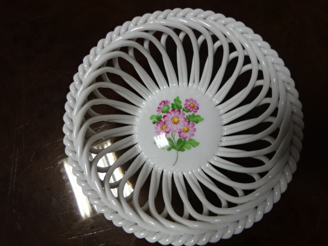 Herendi porcelán asztalközép, magassága 5 cm, étmérője 13 cm. Állapota új, vitrinben tartott darab. Kód: 200