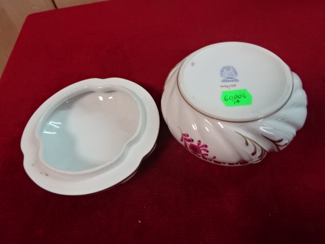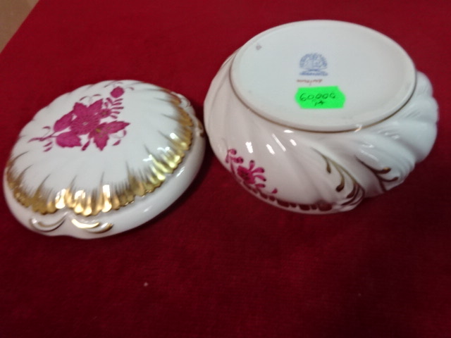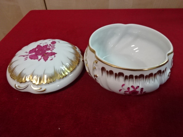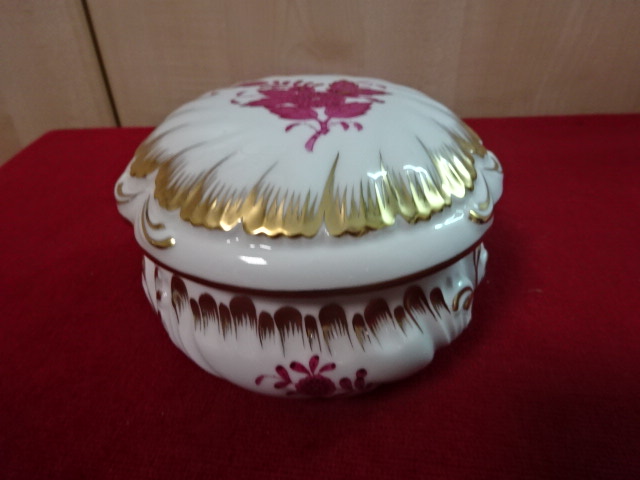 Herendi porcelán bonbonier, Apponyi mintás, 6046/AP. Átmérője 12 cm. Vitrinben tartott darab.