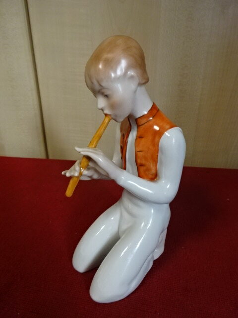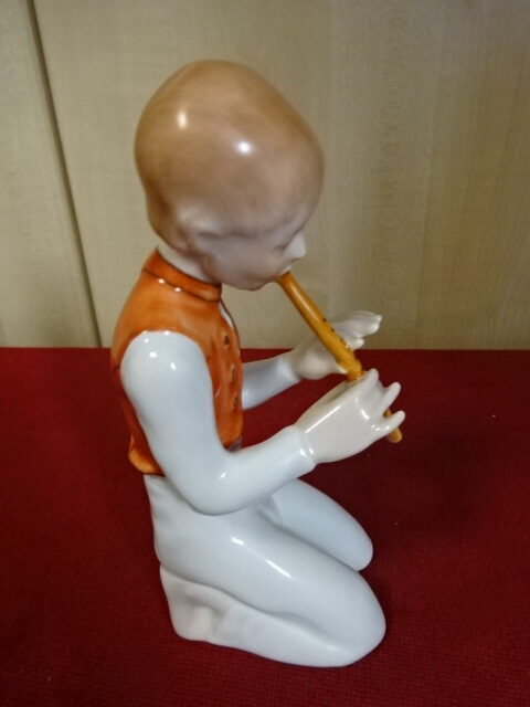 Herendi porcelán figurlális szobor, furulyázó fiú, magassága 17,5 cm. Jókai