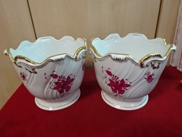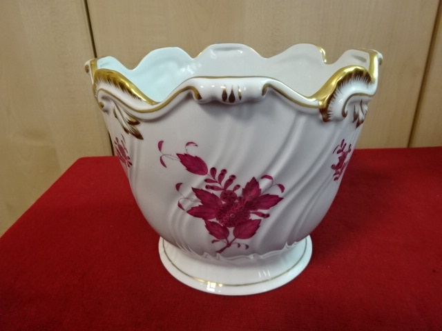 Herendi porcelán kaspó, Apponyi mintával, magassága 16 cm, átmérője 18 cm. 7227/AP. Vitrinben tartott darab.