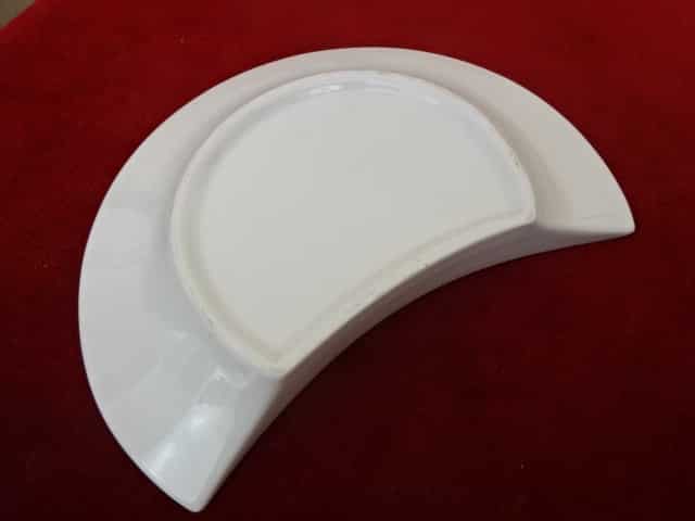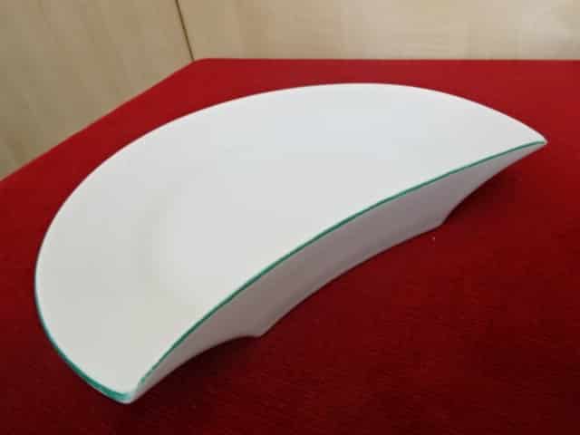 Herendi porcelán saláta tányér, félhold alakú, zöld szegélyes. Jókai.