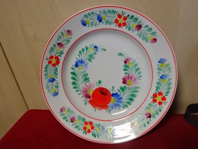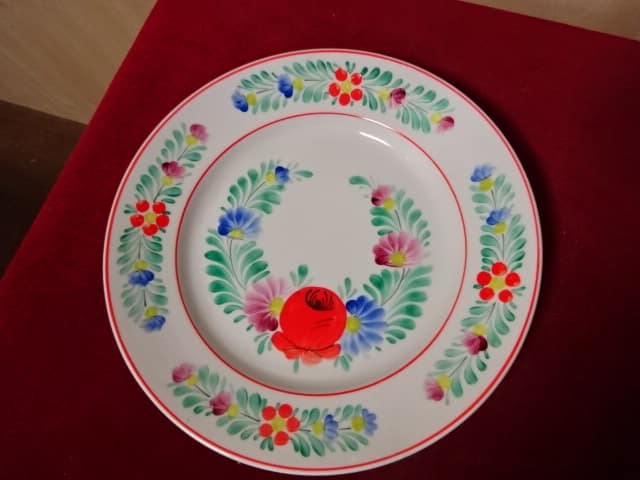 Hollóházi porcelán falitányér, pipacs mintás kézi festés, átmérője 24 cm. Állapota új, vitrinben tartott darab.