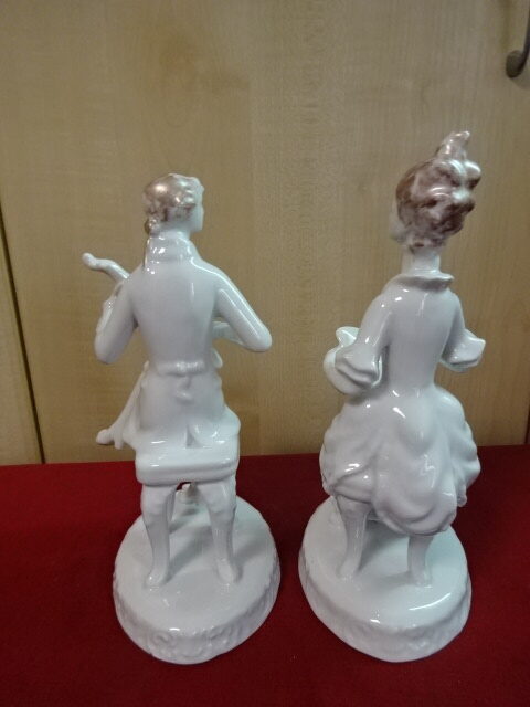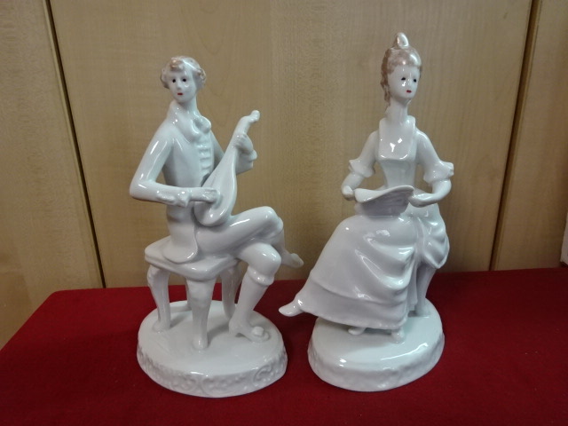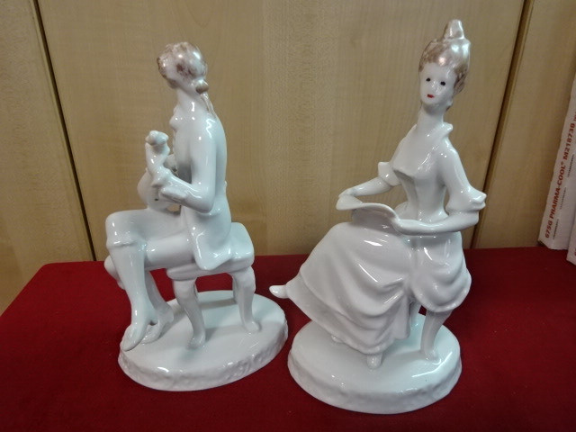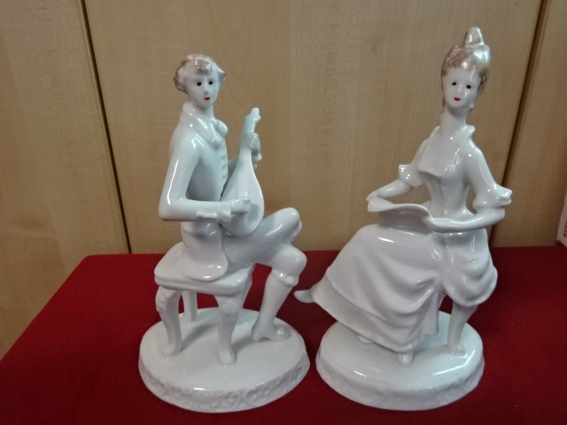 Hollóházi porcelán figurák, két darab. Retro barokk páros, magasságuk 23,5 cm. Kód: 4000