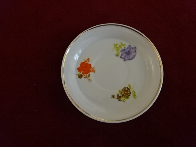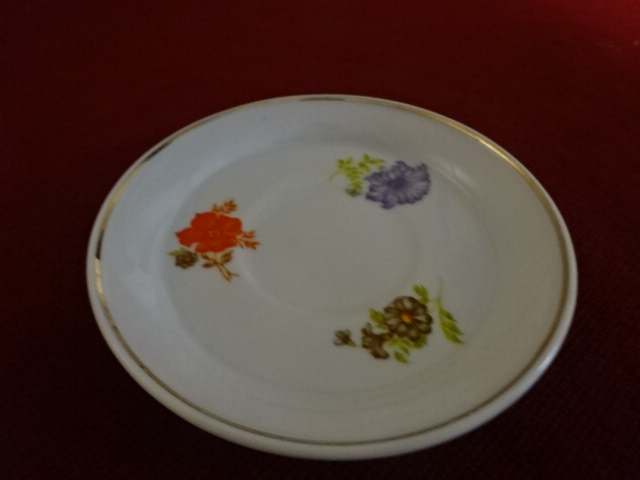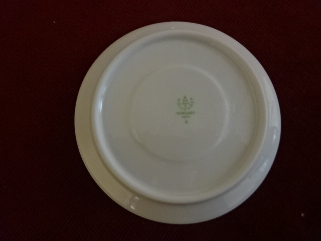 Hollóházi porcelán teáscsésze alátét, átmérője 11 cm. Vitrinben tartott darab.