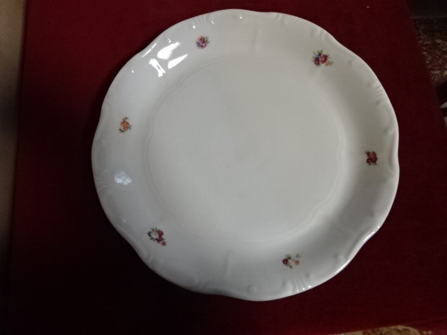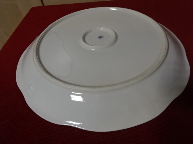 Zsolnay porcelán kerek húsos tál, antik, pajzspecsétes, átmérője 30 cm. Vitrinben tartott darab.