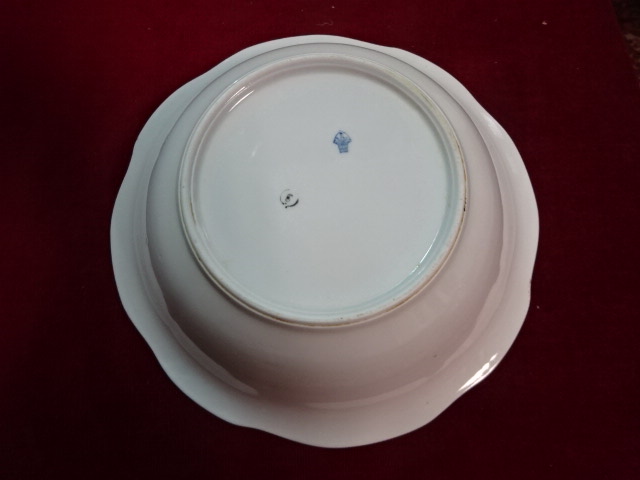 Zsolnay porcelán kerek köretes tál, antik, pajzspecsétes, átmérője 25 cm. Jókai