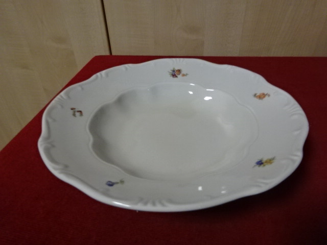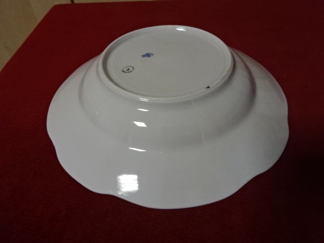 Zsolnay porcelán mélytányér, antik, pajzspecsétes, átmérője 24 cm. Vitrinben tartott darab.