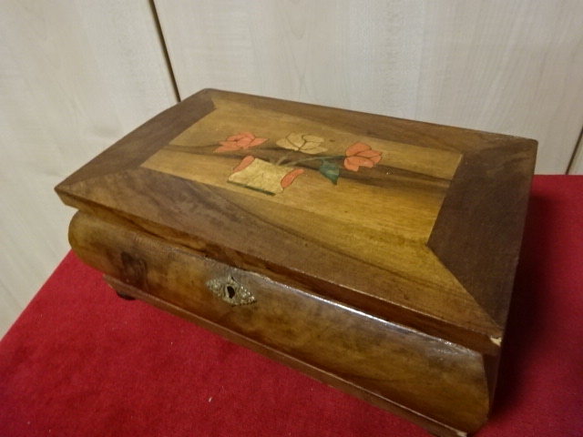 Antik fa doboz, virágmintával a tetején. Jókai