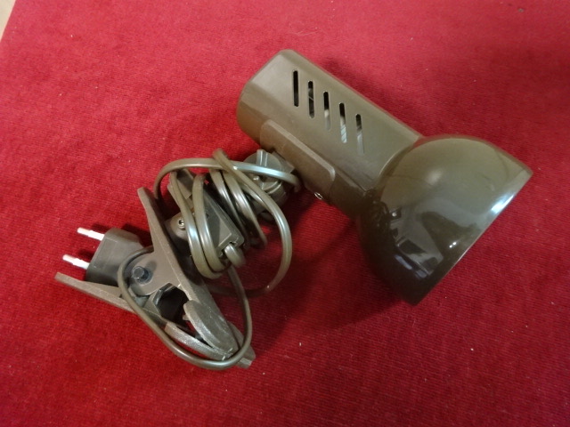 Csíptetős olvasó lámpa, barna színű. Állapota újszerű. A búra fémből van.
