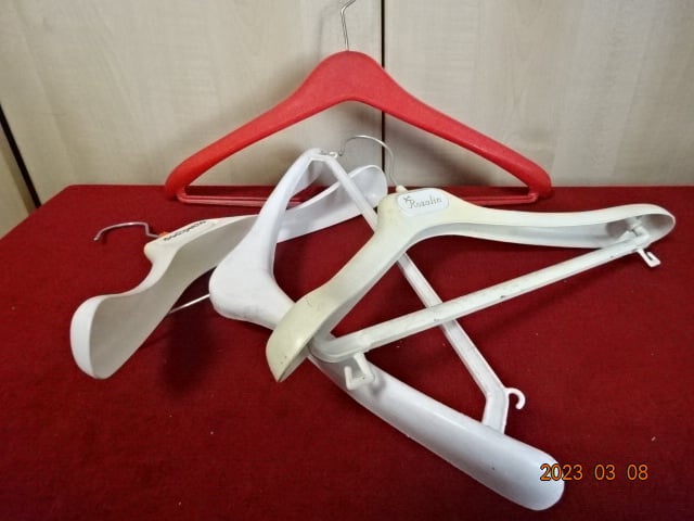 Műanyag ruhafogas, kabátok, zakók tárolására, vastag, erős, tíz darab. Jókai.