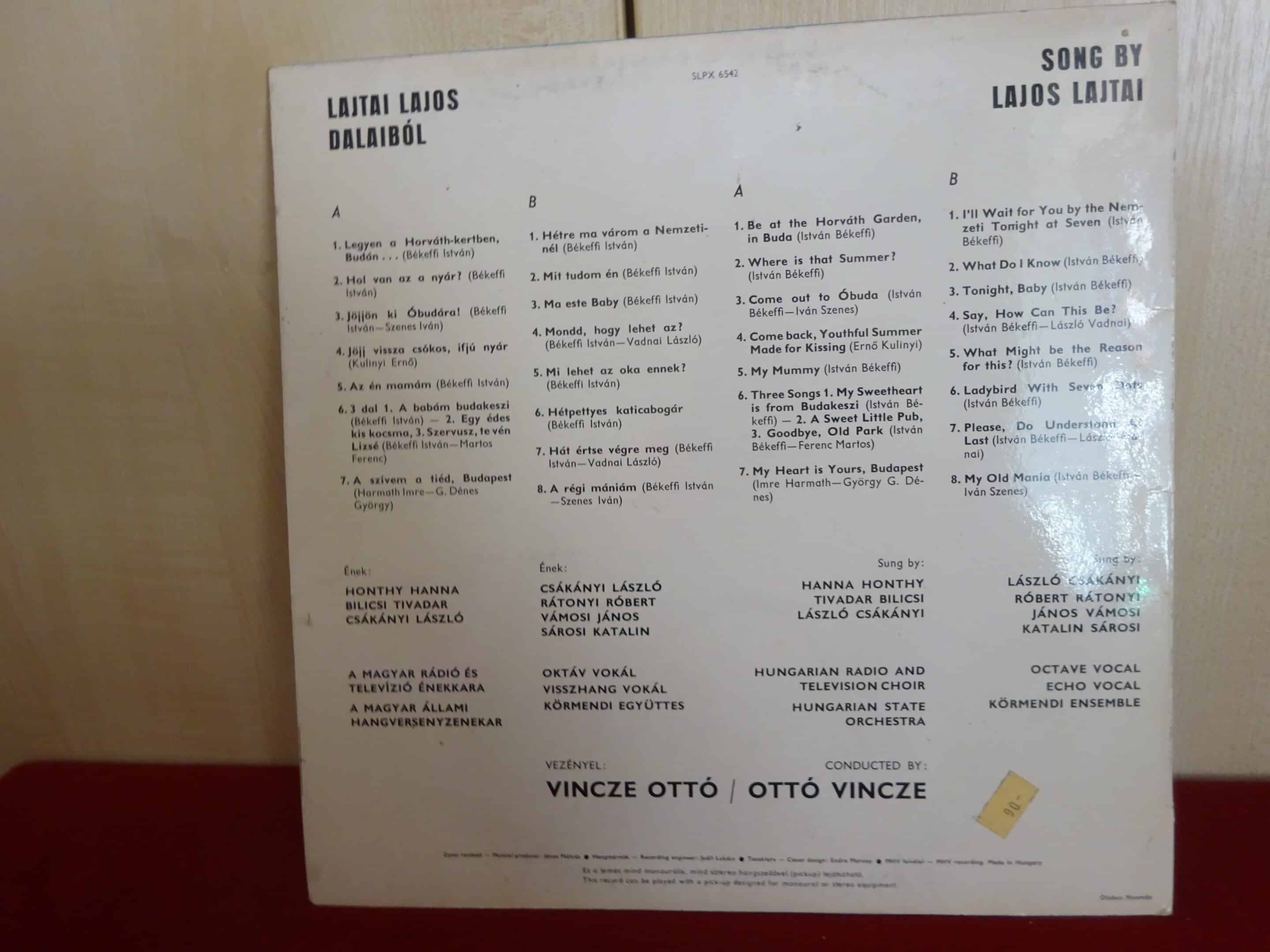 VINYL nagylemez, QUALITON SLPX 6542, stereo-mono. Lajtai Lajos dalai: Hol van az a nyár. Jókai.