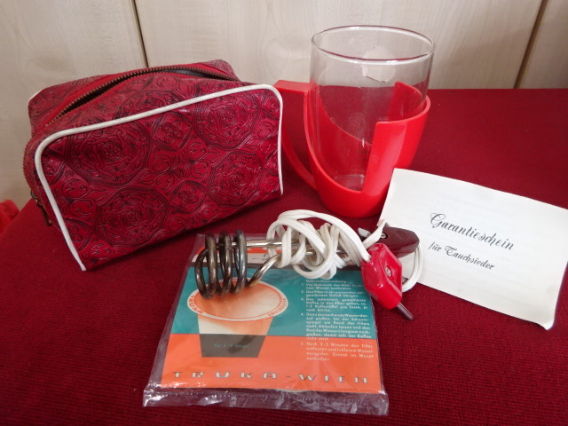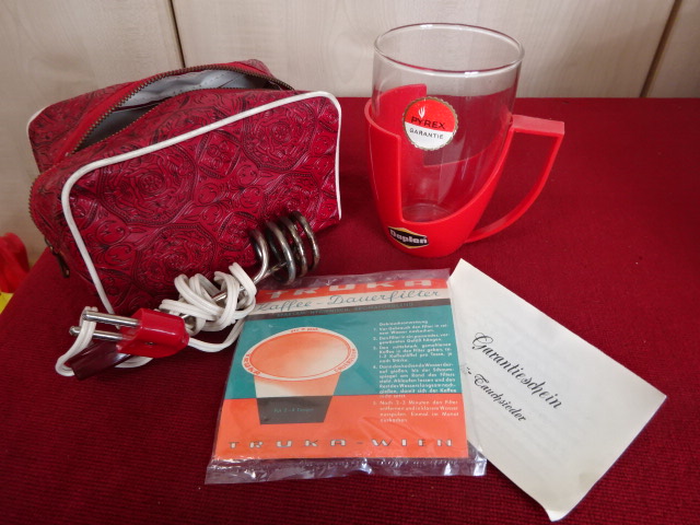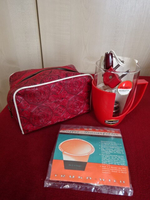 Osztrák uti vízforraló, kévékészítő. Szűrővel és táskával együtt. Nem volt eddig használva. Kód: 250
