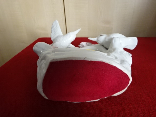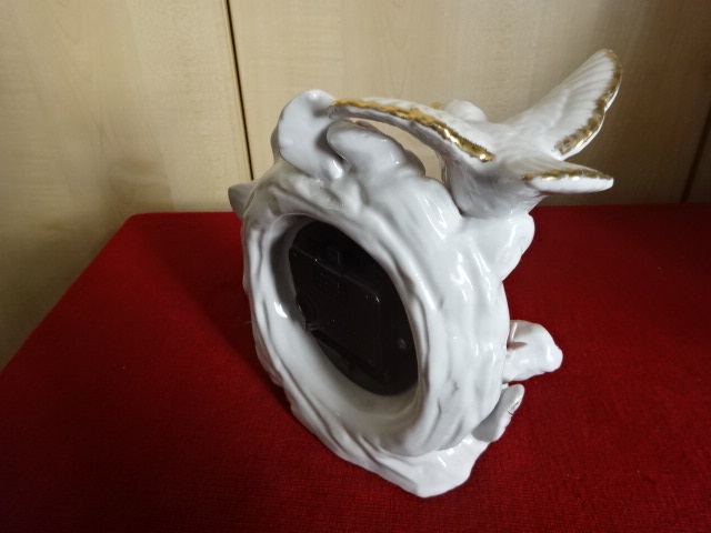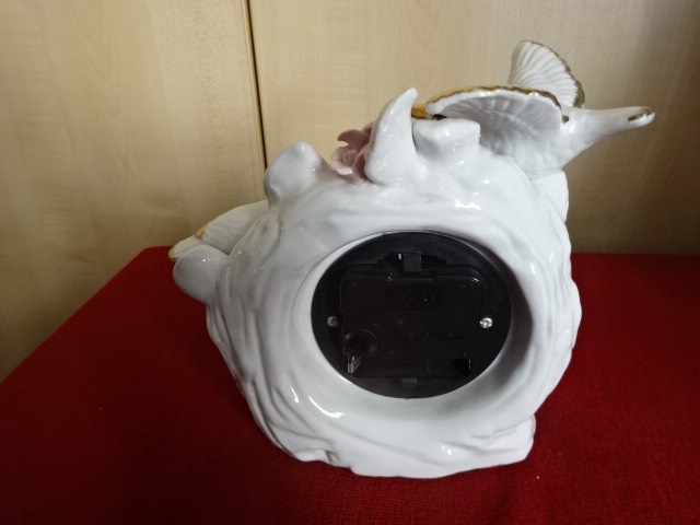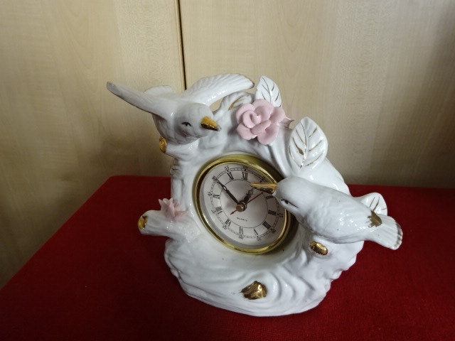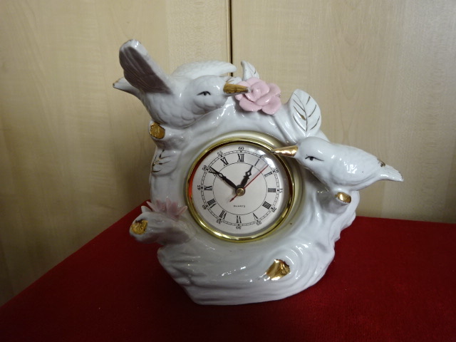 Német porcelán keretben digitális óra. Két galamb, rózsák és arany díszítés van rajta. Jókai