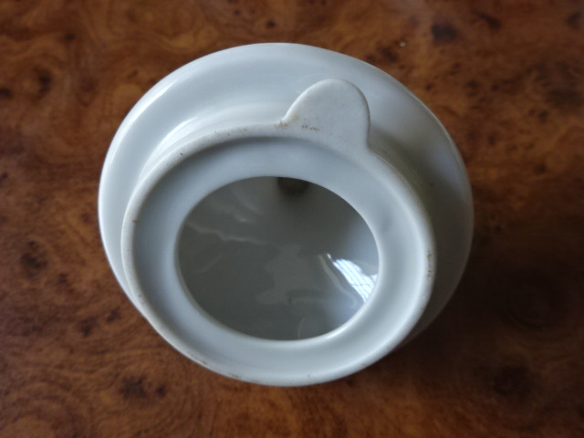 Porcelán kávéskanna alátét, barna rózsával, külső átmérője 7 cm, belső átmérője 5,2 cm. Vitrinben tartott darab.