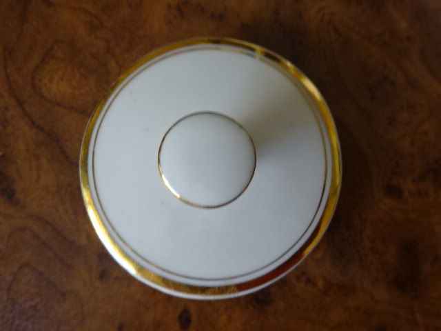 Porcelán kávéskanna fedő, arany szegélyes, külső átmérője 6,7 cm. Jókai