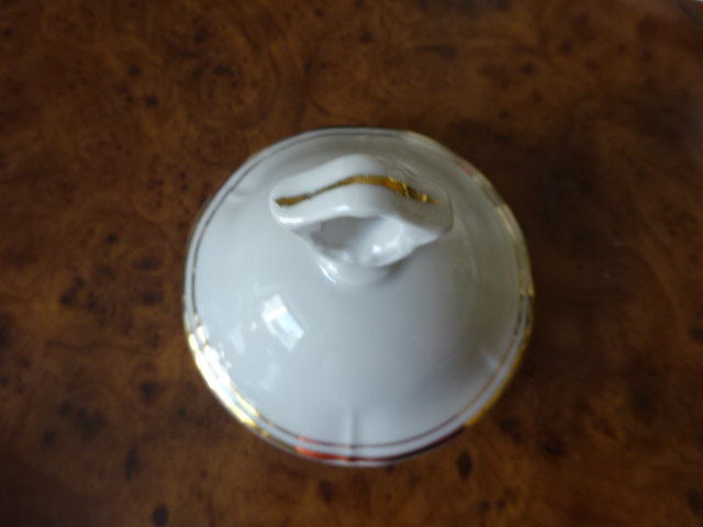 Porcelán kávéskanna fedő, arany szegélyes, külső átmérője 8 cm. Jókai