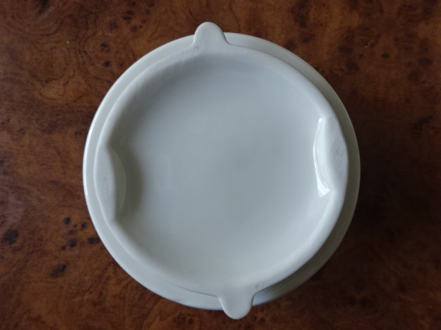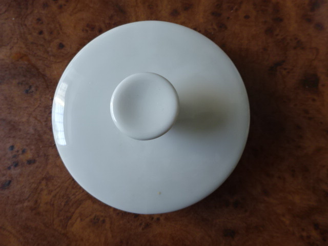 Porcelán kásvéskanna fedő, fehér, külső átmérője 8,5 cm, belső átmérője 6,7 cm.