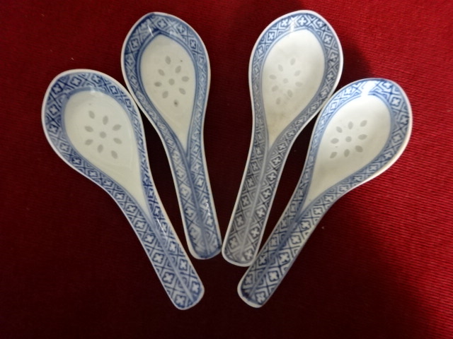 Kínai porcelán kanál, hossza 14 cm. Négy darab egyben eladó. Jókai