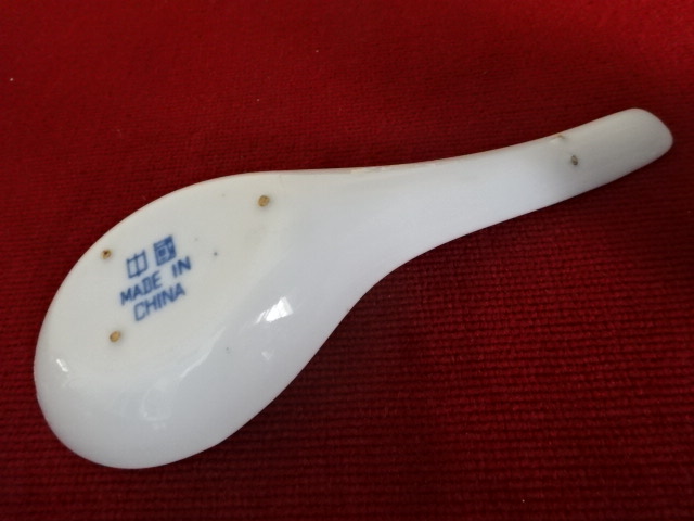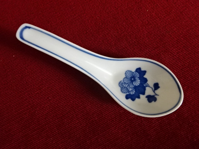 Porcelán kínai kanál, kék virággal a közepén, hossza 14 cm.