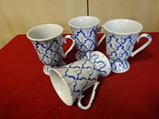 Német porcelán cappuccinós pohár, magassága 11,5 cm, átmérője 8 cm. Kék mintás.