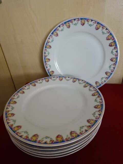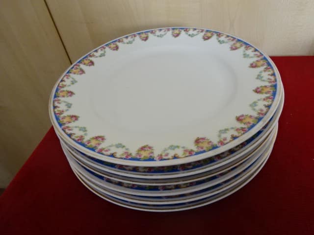H & C csehszlovák porcelán, antik lapostányér, rózsa mintás, hat darab egyben. Jókai.