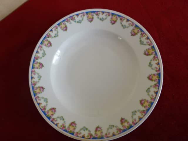 H & C csehszlovák porcelán, antik mélytányér, rózsa mintás, átmérője 24 cm. Állapota új, eddig még nem volt használva.