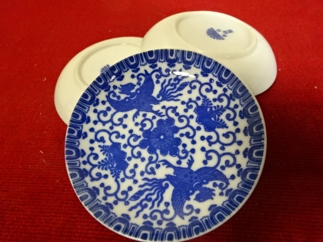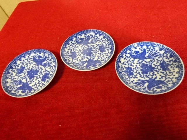 Japán porcelán mini tálka sárkány mintával, átmérője 9 cm. A három egyben eladó – az egyik szélén pici lepattanással.