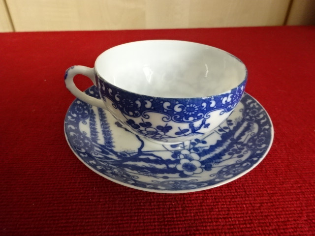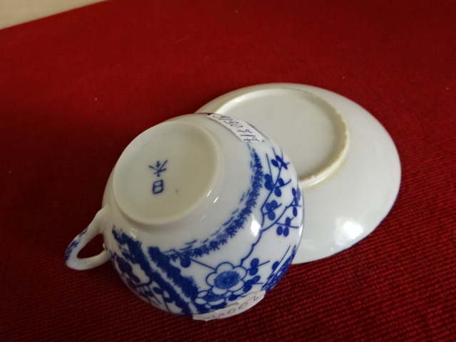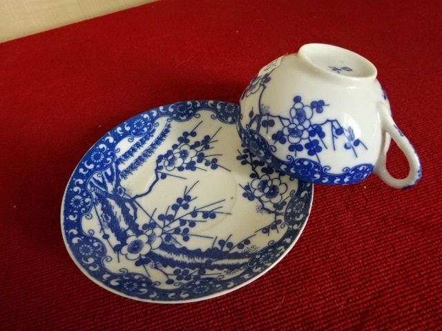 Japán porcelán, cseresznyevirágos kávéscsésze + alátét. A csésze átmérője 7,5 cm, az alátét átmérője 10,3 cm.