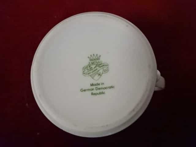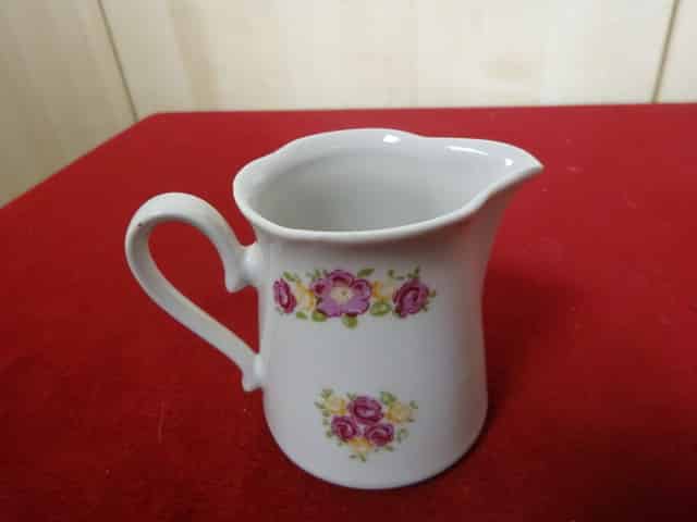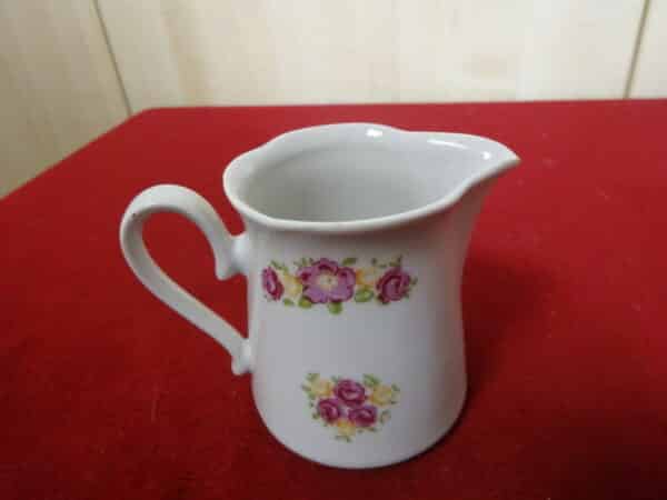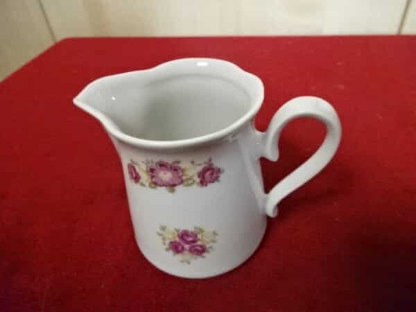 Német porcelán tejkiöntő az 1960-as évekből. Állapota új, vitrinben tartott darab. Rózsa mintás. Magassága 7,7 cm.