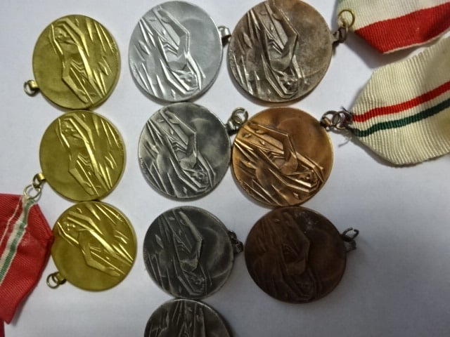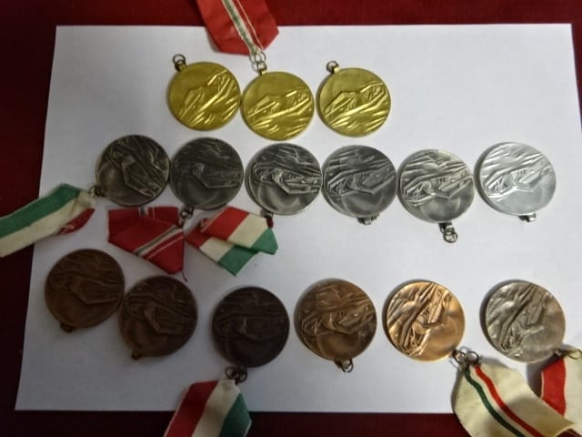Sport érme, úszás – 1980-as évek. Arany, ezüst, bronz. Jókai