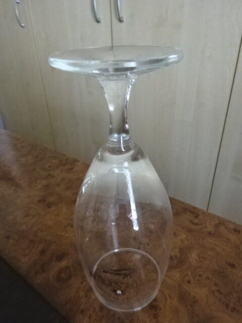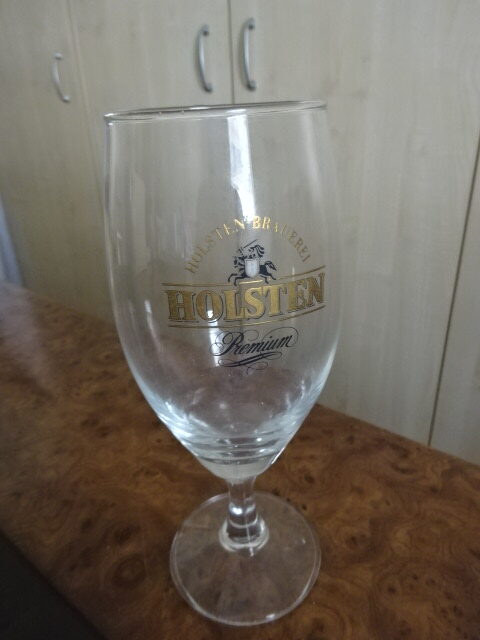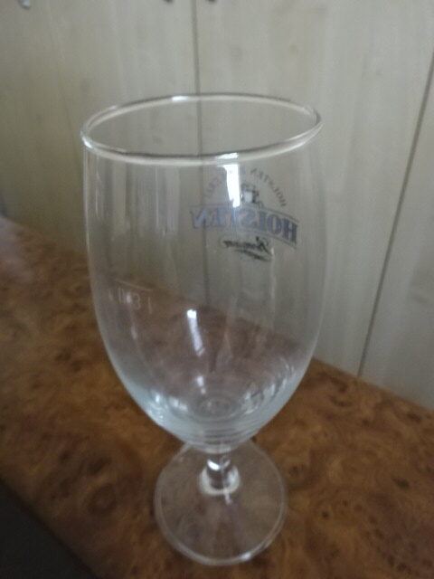 Talpas sörös pohár, HOLSTEN felirattal. Magassága 19,5 cm, átmérője 6,5 cm. Talpán alig észrevehető lepattanással.