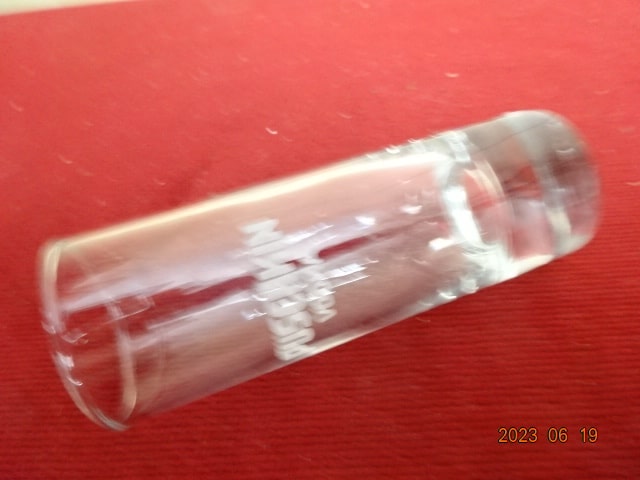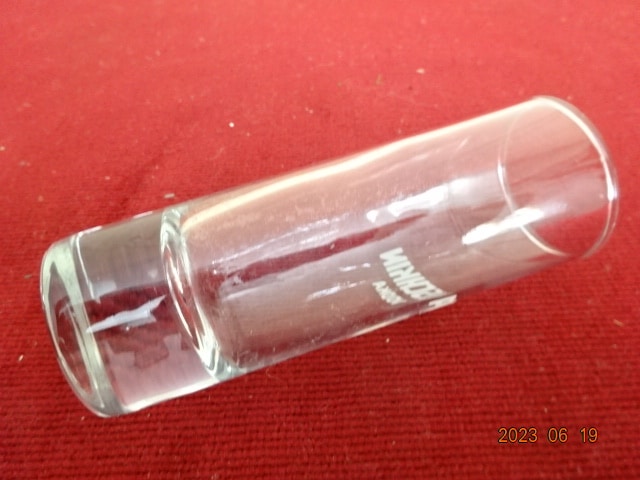 Vastag talpú pálinkás kupica, PUSCHKIN VODKA felirattal. Jókai.