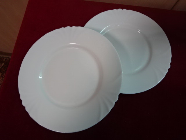 Francia üveg lapostányér, átmérője 25 cm. A két darab egyben eladó.