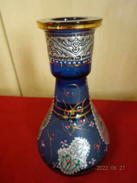 kék fémrátétes váza valószínű vízipipa alja Tunéziából
