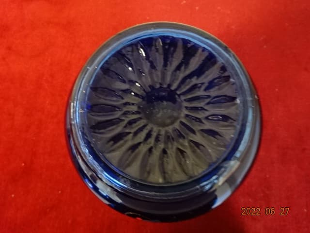 Tunéziai fémrátétes kézifestésű kék üvegváza vízipipa alja Vanneki Jókai